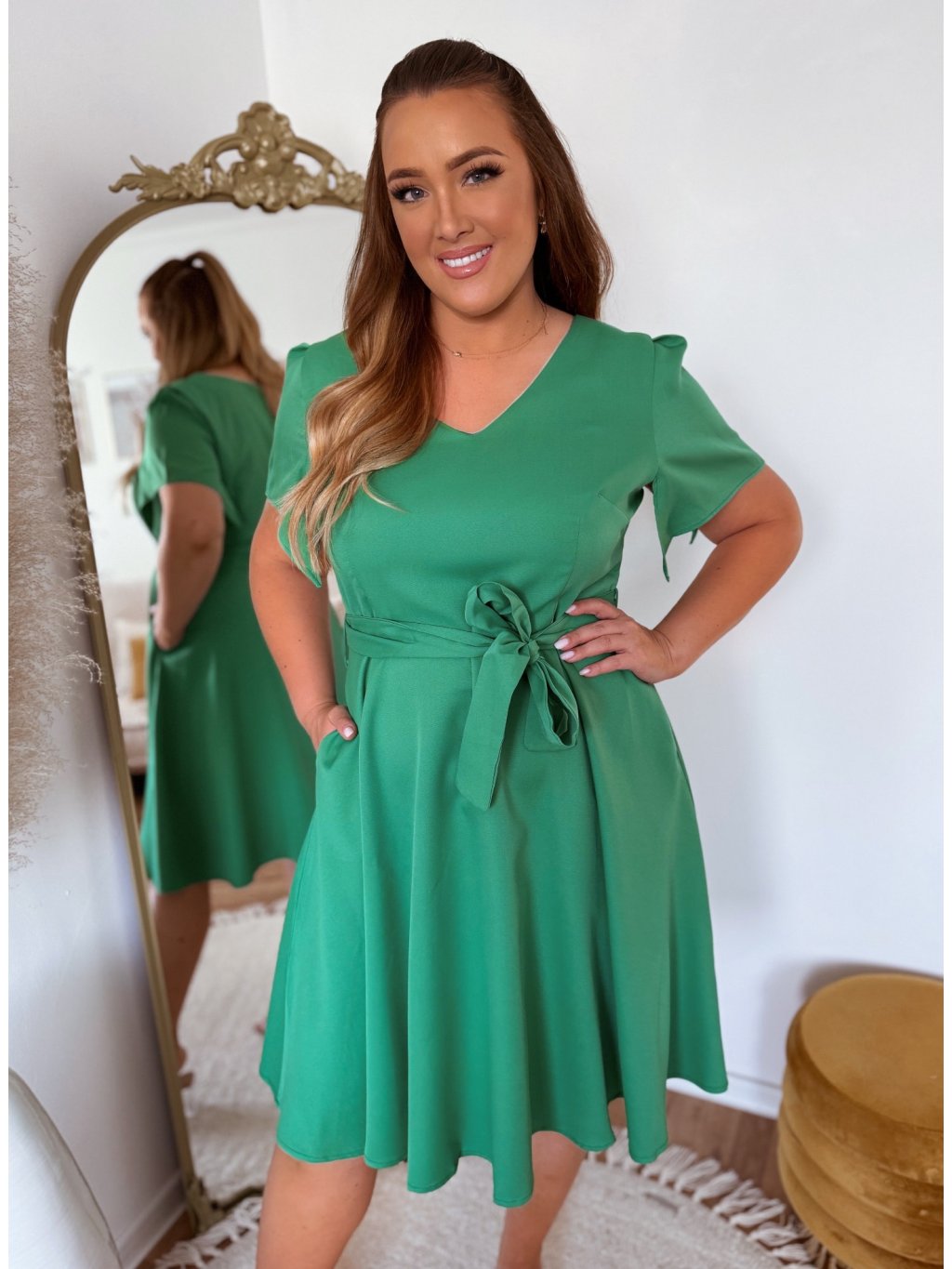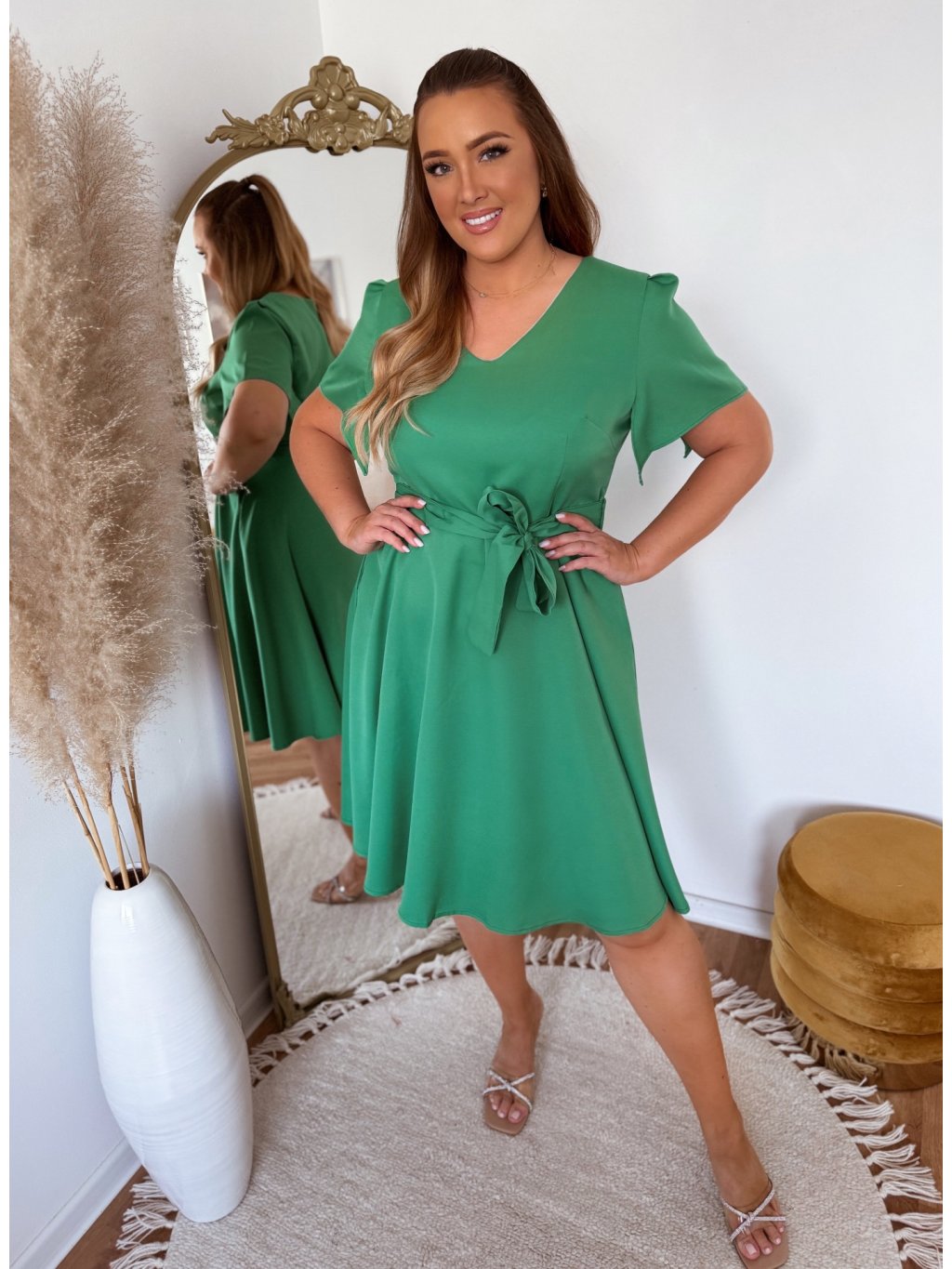 Elegantné áčkové šaty pre moletky s voľnou sukňou siahajúcou pod kolená. Šaty majú zips na chrbte a sú elastické. Modelka meria 168 cm a má na sebe veľkosť XL(44).