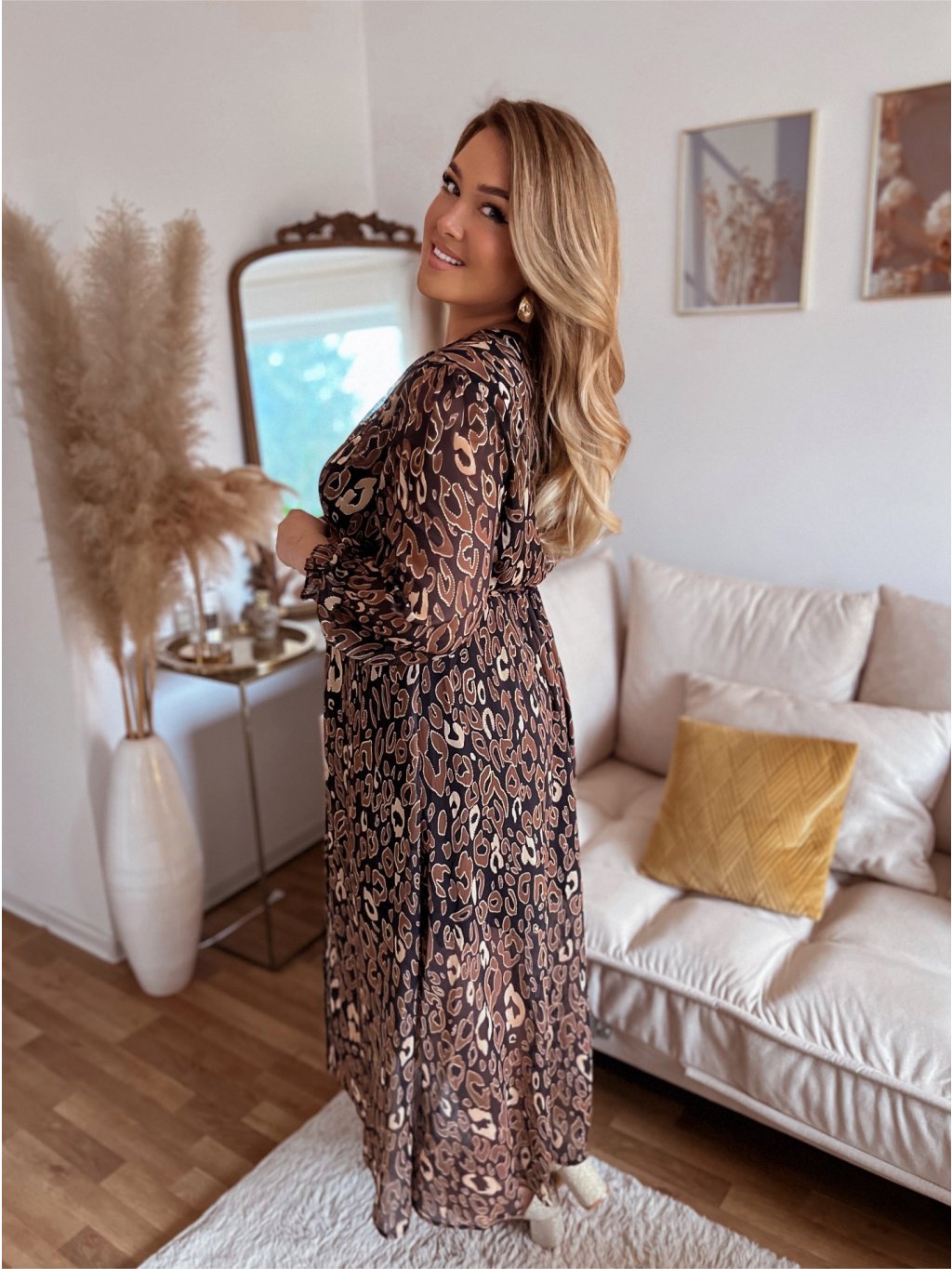 Dlhé hnedé šaty s leopardím vzorom