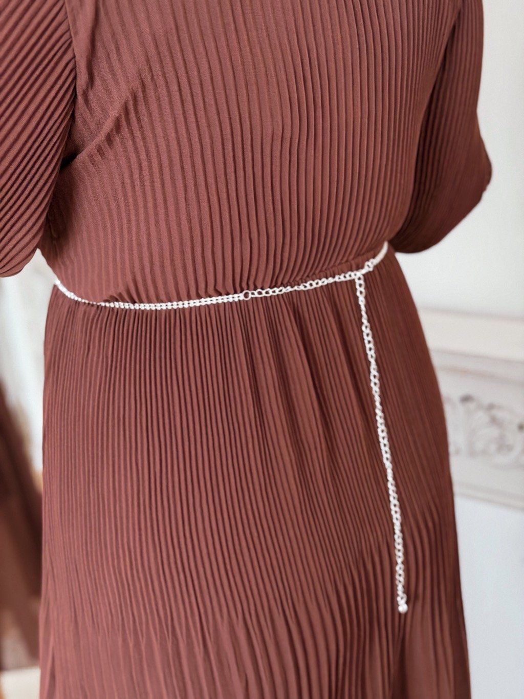 Elegantný opasok so zdobením a retiazkou v striebornej farbe dodá šatám luxusný nádych. Vďaka univerzálnej veľkosti sa hodí k spoločenským, svadobným aj večerným outfitom a krásne zvýrazní pás.
