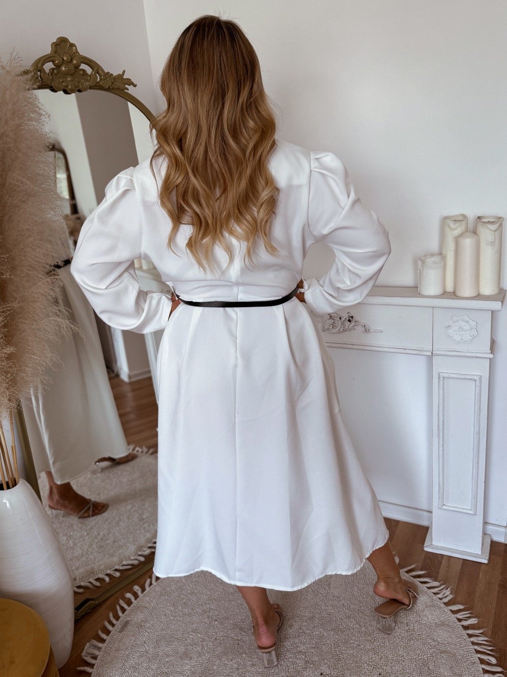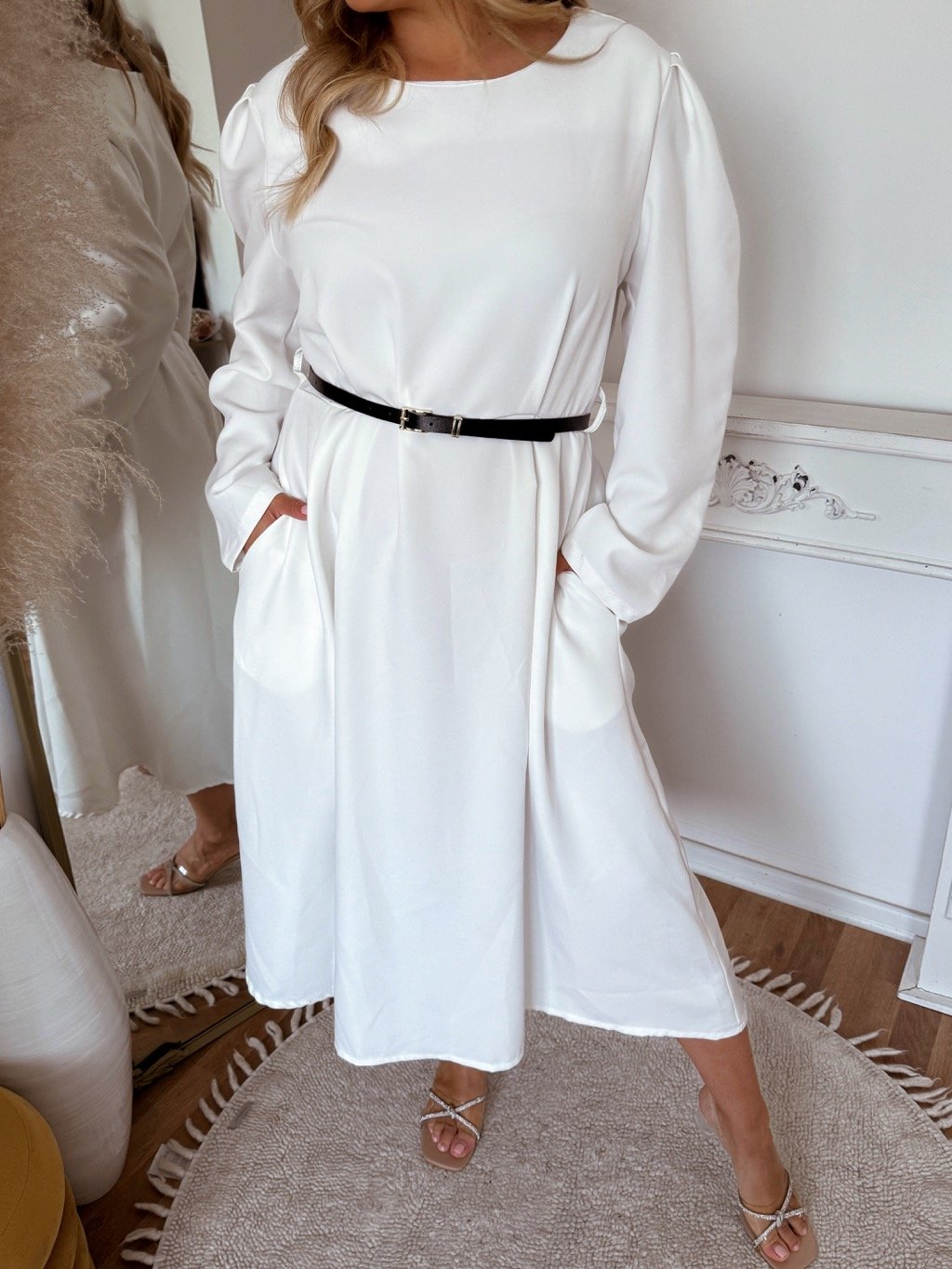 Midi šaty pre moletky s dlhým rukávom ktorý je nazberaný na ramenách. Šaty majú voľný strih, sťahujú sa opakom v páse, majú vrecká. Šaty sedia na veľkosti XL- 4XL. Modelka meria 168 cm a má na sebe univerzálnu veľkosť.