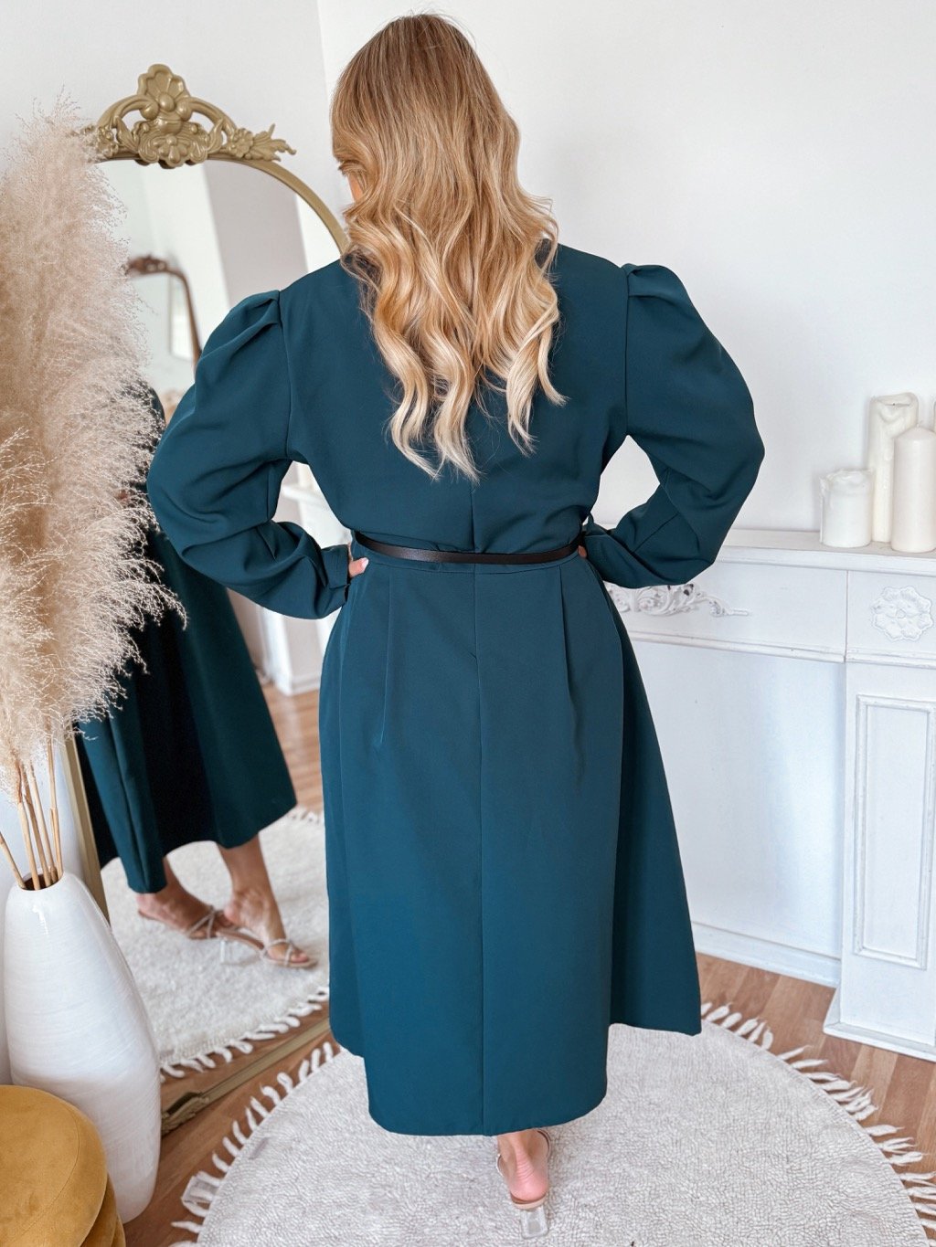 Midi šaty pre moletky s dlhým rukávom ktorý je nazberaný na ramenách. Šaty majú voľný strih, sťahujú sa opakom v páse, majú vrecká. Šaty sedia na veľkosti XL- 4XL. Modelka meria 168 cm a má na sebe univerzálnu veľkosť.