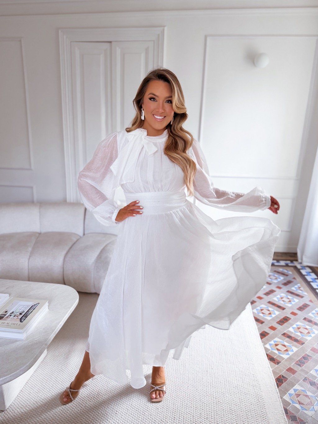 Biele šaty s mašľou pri krku