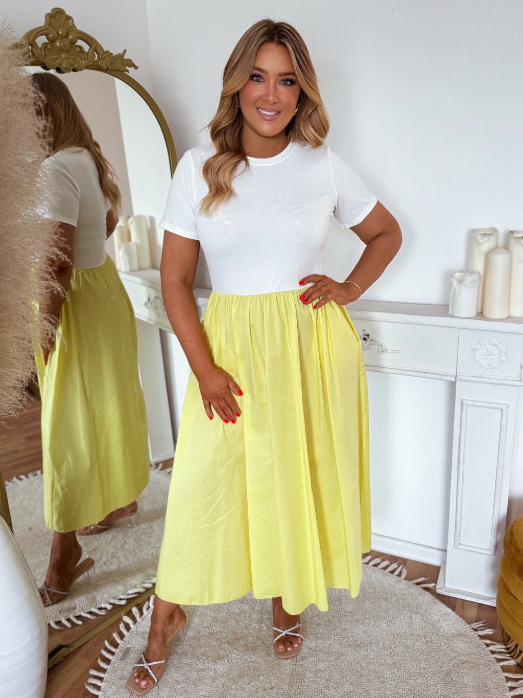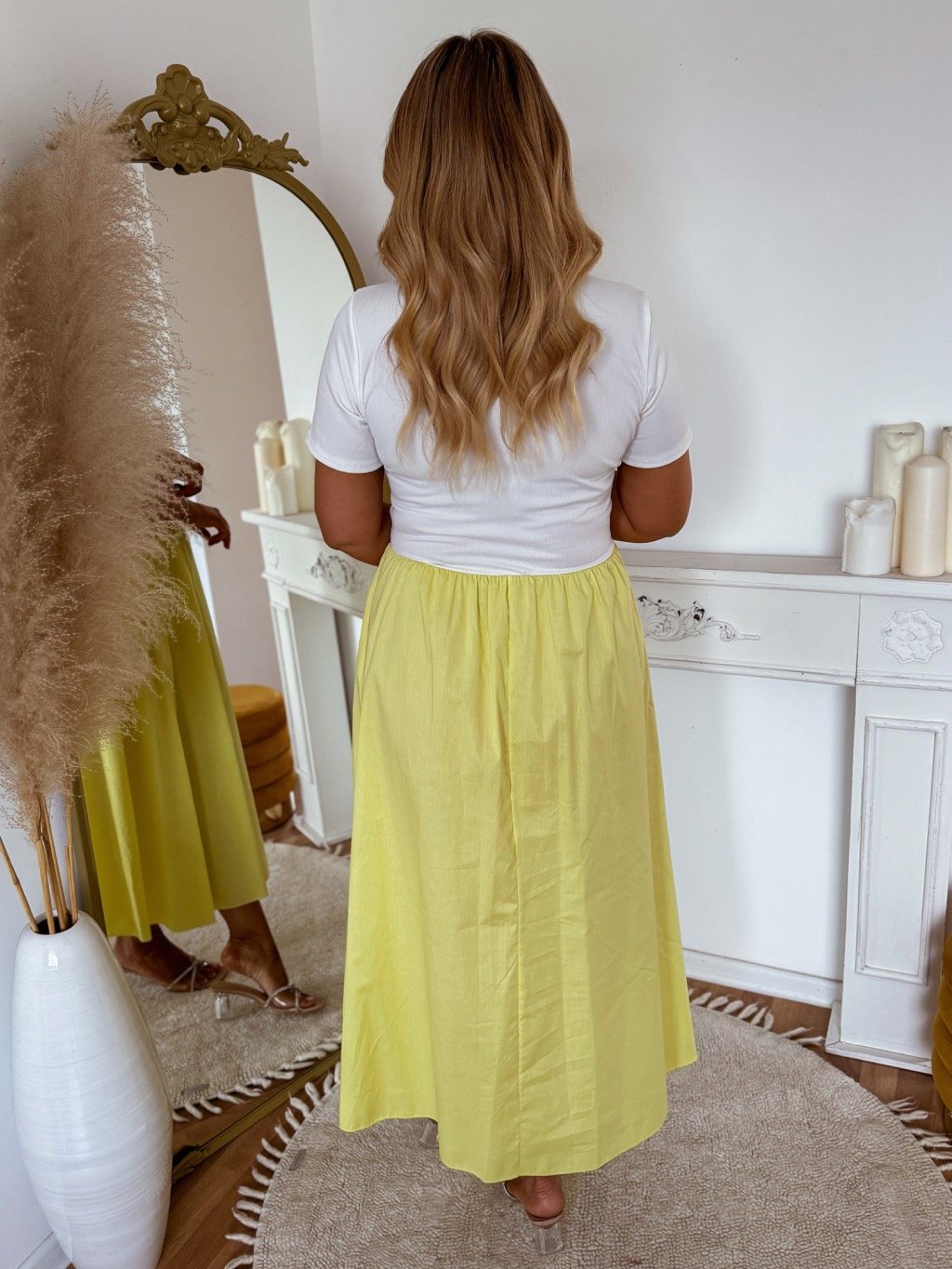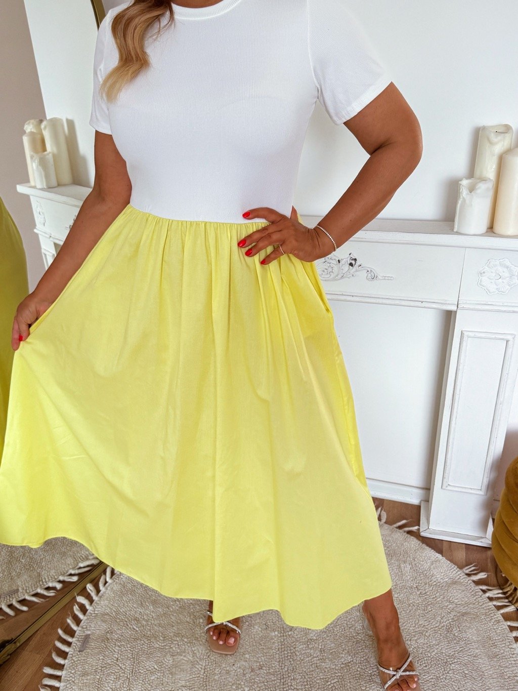 Bielo-žlté šaty s krátkym rukávom