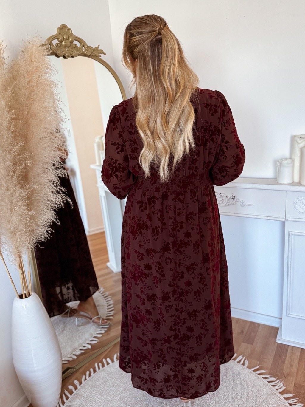 Bordové šaty so zamatovými kvetmi