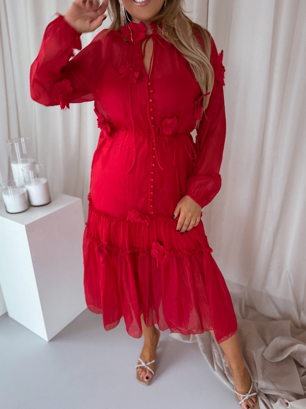 Červené šaty s kvetmi