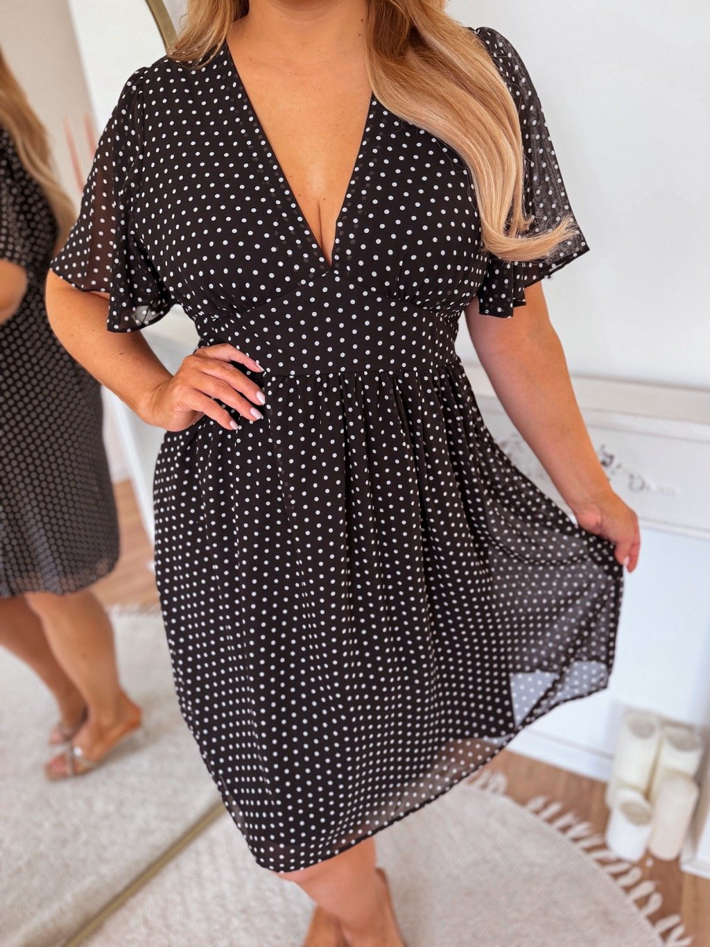 Čierne krátke bodkované šaty
