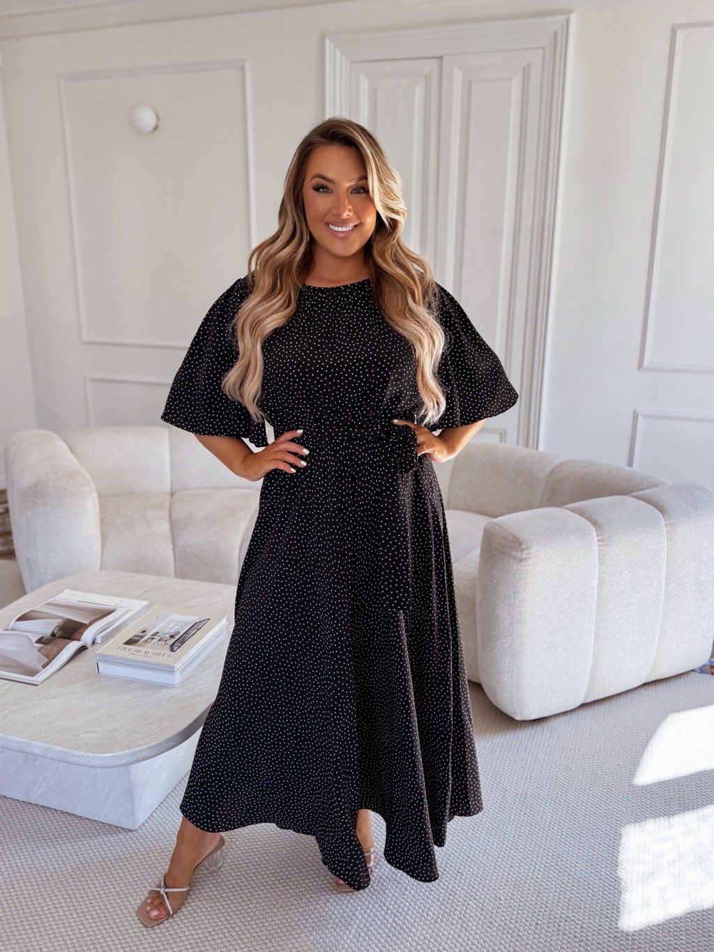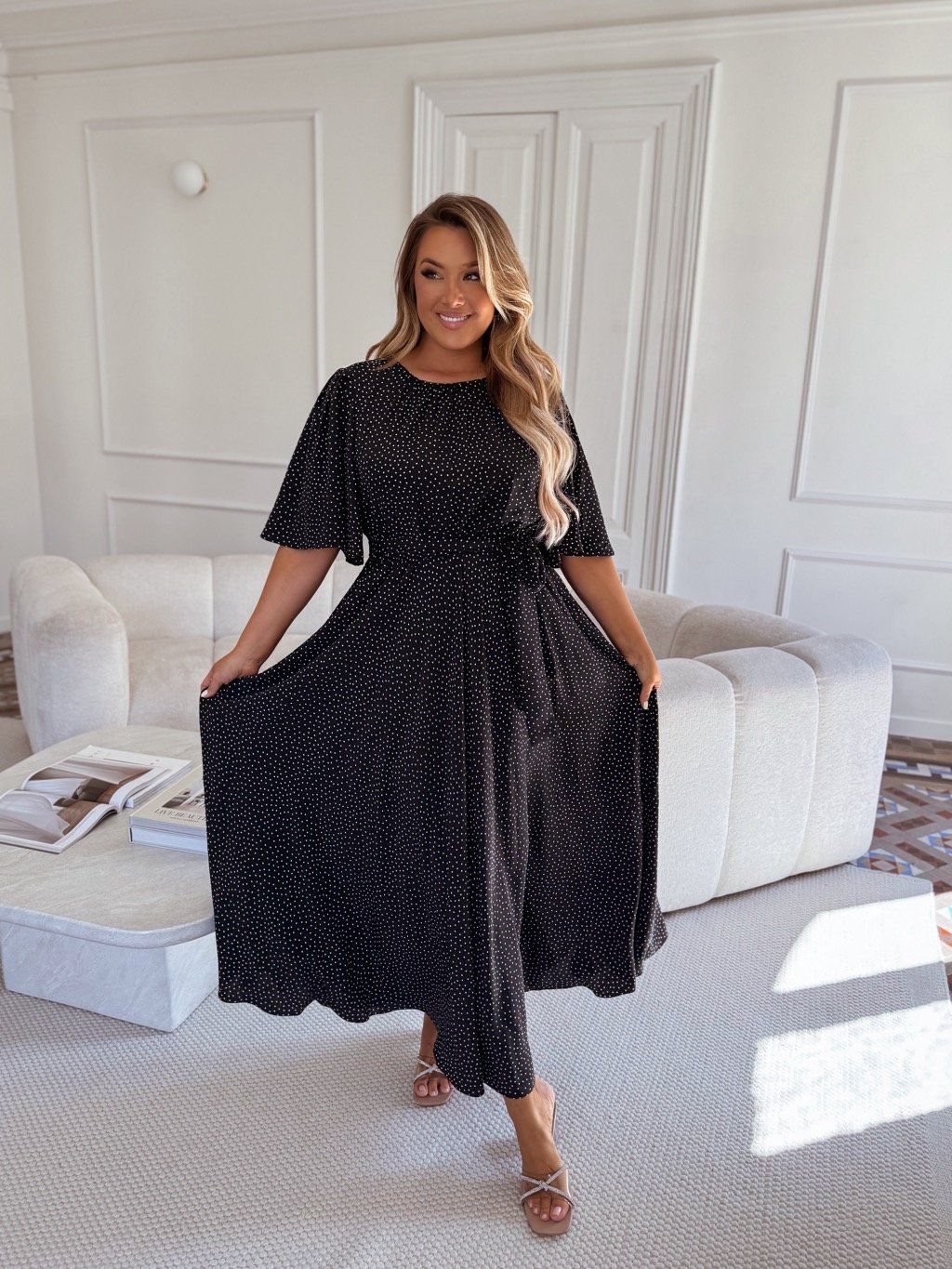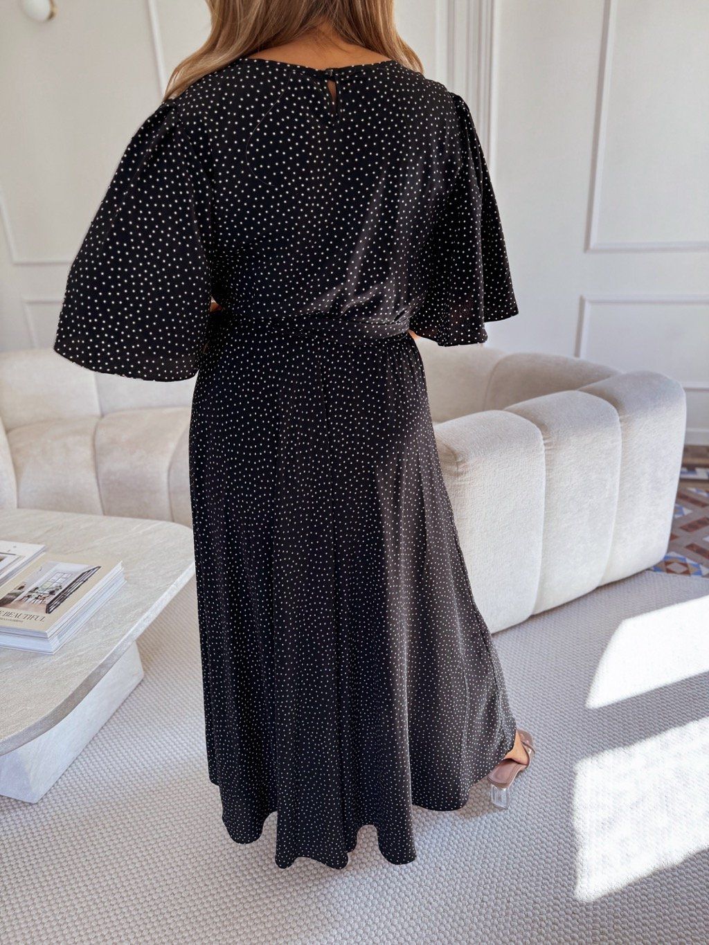Čierno-biele bodkované šaty