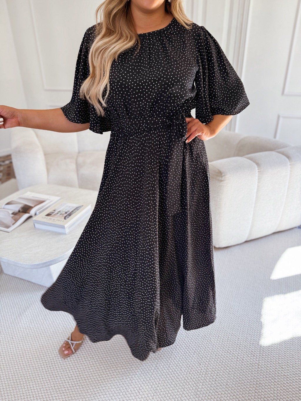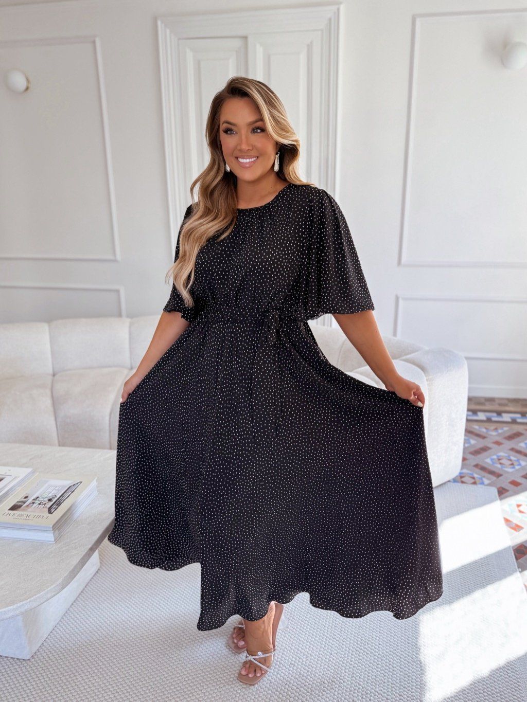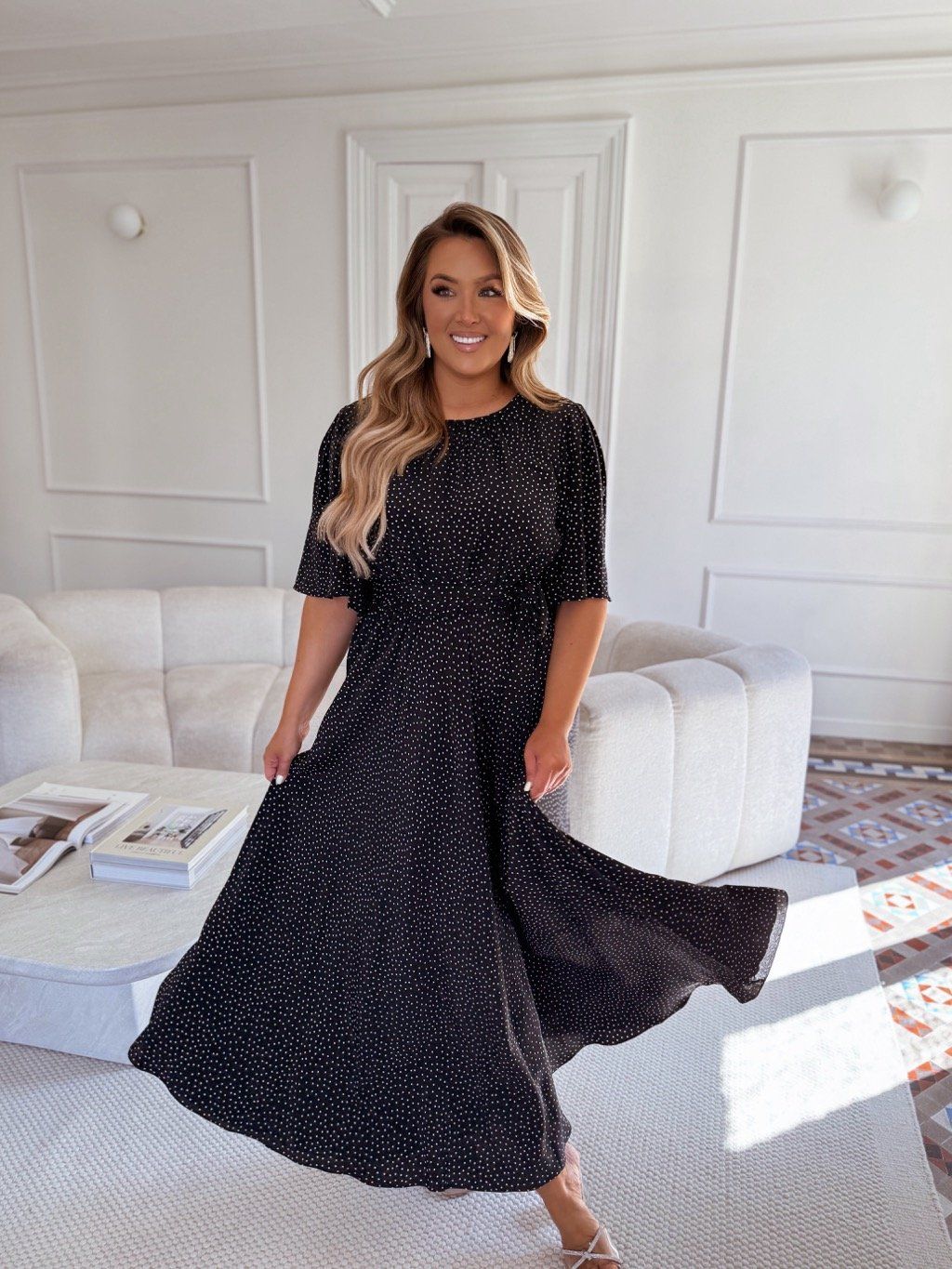 Čierno-biele bodkované šaty