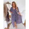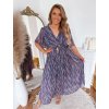Elegantné dlhé šaty s farebným vzorom, lichotivým výstrihom do V a opaskom na zvýraznenie siluety. Ideálne na oslavy, svadby a špeciálne príležitosti. Šaty majú elastickú gumu v páse. Modelka meria 168 cm a má na sebe veľkosť XL.