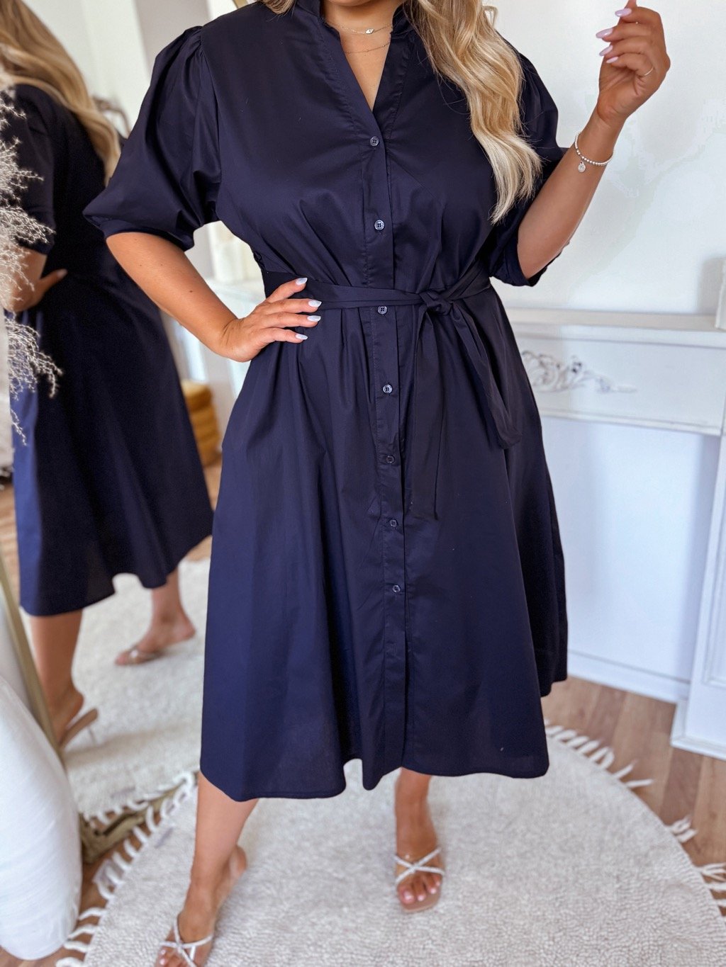Dlhé bavlnené košeľové šaty - tmavomodrá