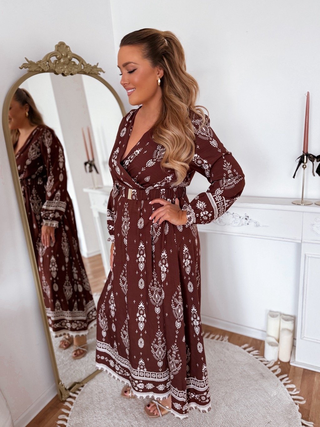 Dlhé hnedé šaty so vzorom