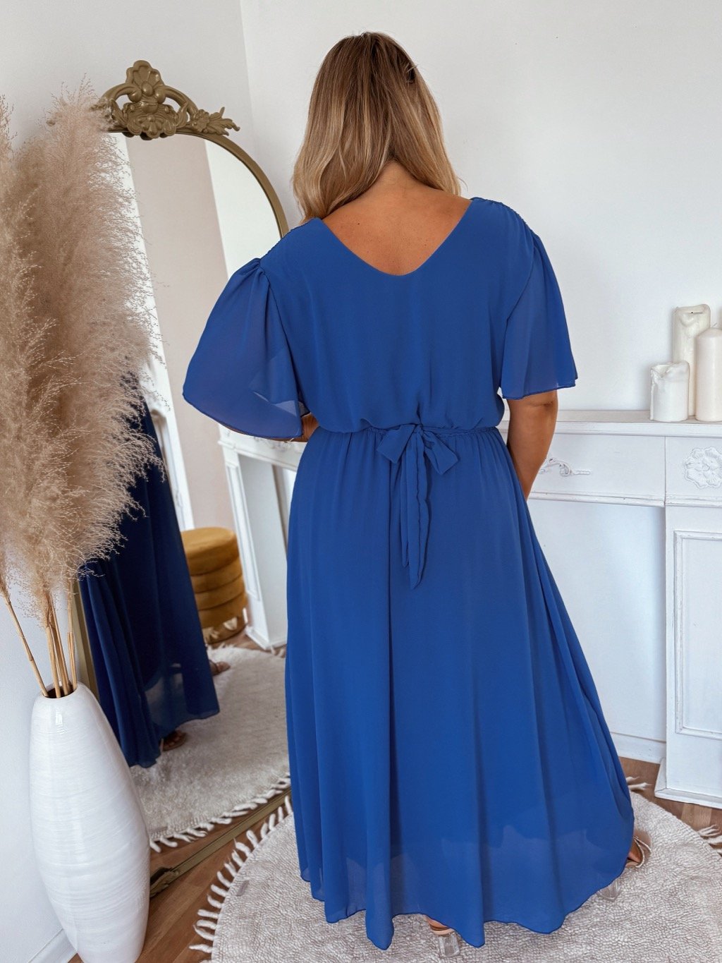 Dlhé šaty pre moletky s krátkym rukávom a s gumičkou v páse, sťahujú opaskom na chrbte, šaty majú úplne voľný strih. Šaty sedia na veľkosti XL- 4XL. Modelka meria 168 cm a má na sebe univerzálnu veľkosť.