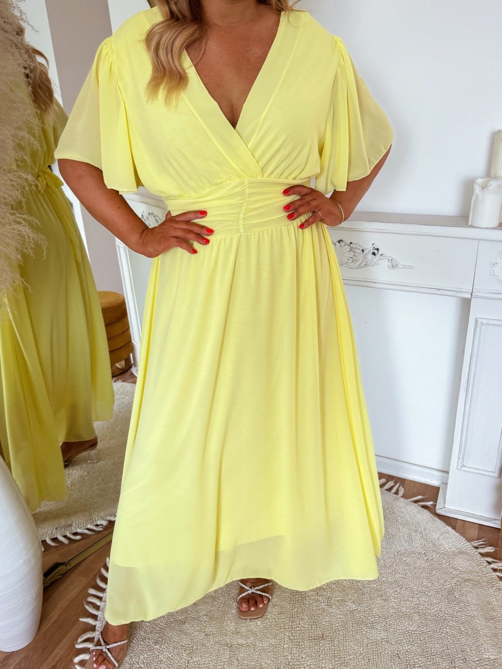 Dlhé šaty pre moletky s krátkym rukávom a s gumičkou v páse, sťahujú opaskom na chrbte, šaty majú úplne voľný strih. Šaty sedia na veľkosti XL- 4XL. Modelka meria 168 cm a má na sebe univerzálnu veľkosť.