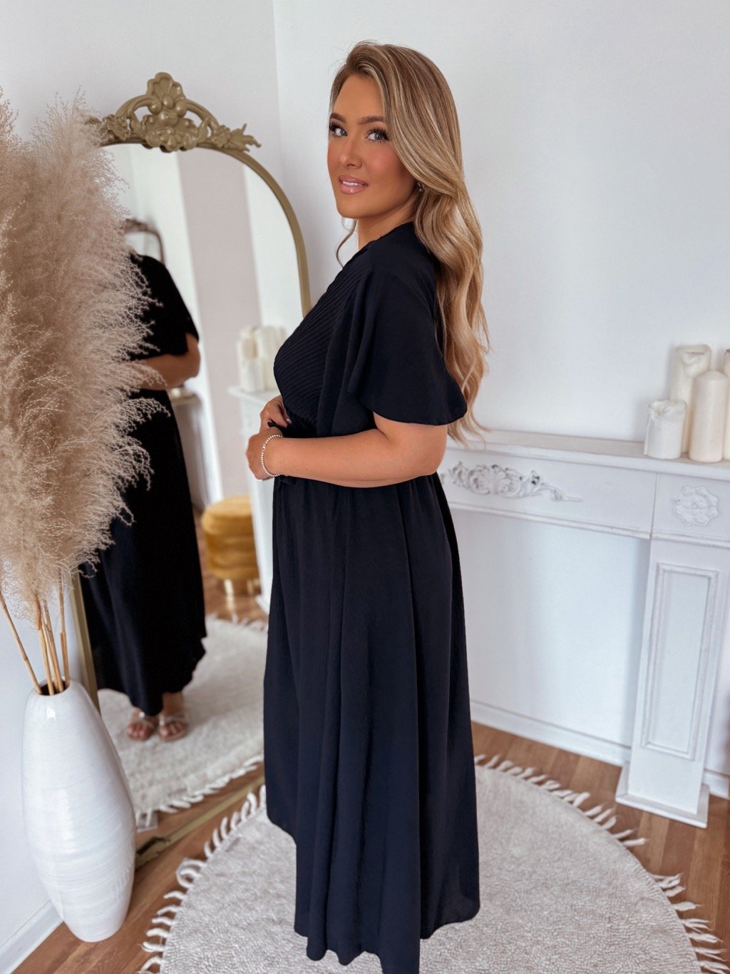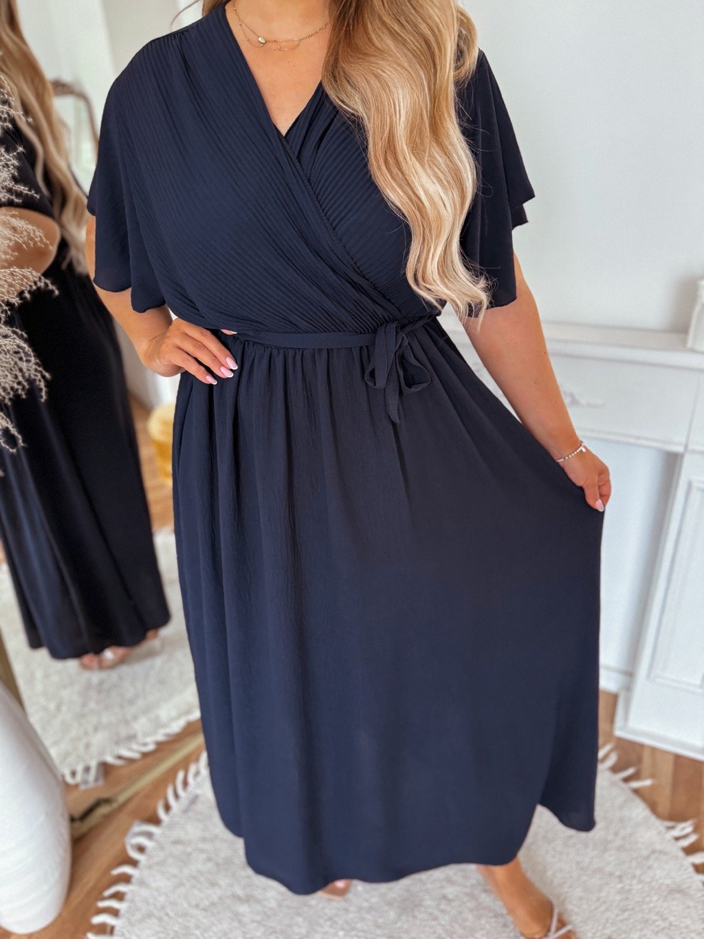 Dlhé šaty s krátkym rukávom majú voľnejší strih, sú elastické a majú elastickú gumičku v páse. Modelka meria 168 cm a má na sebe veľkosť XL/XXL.