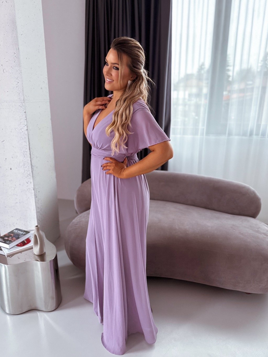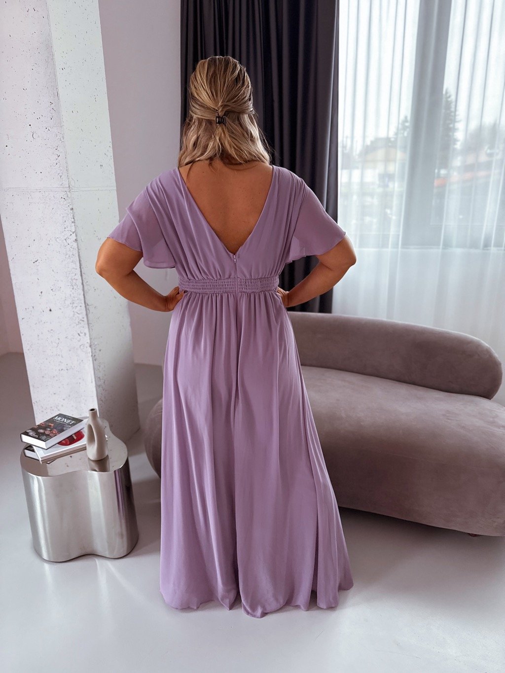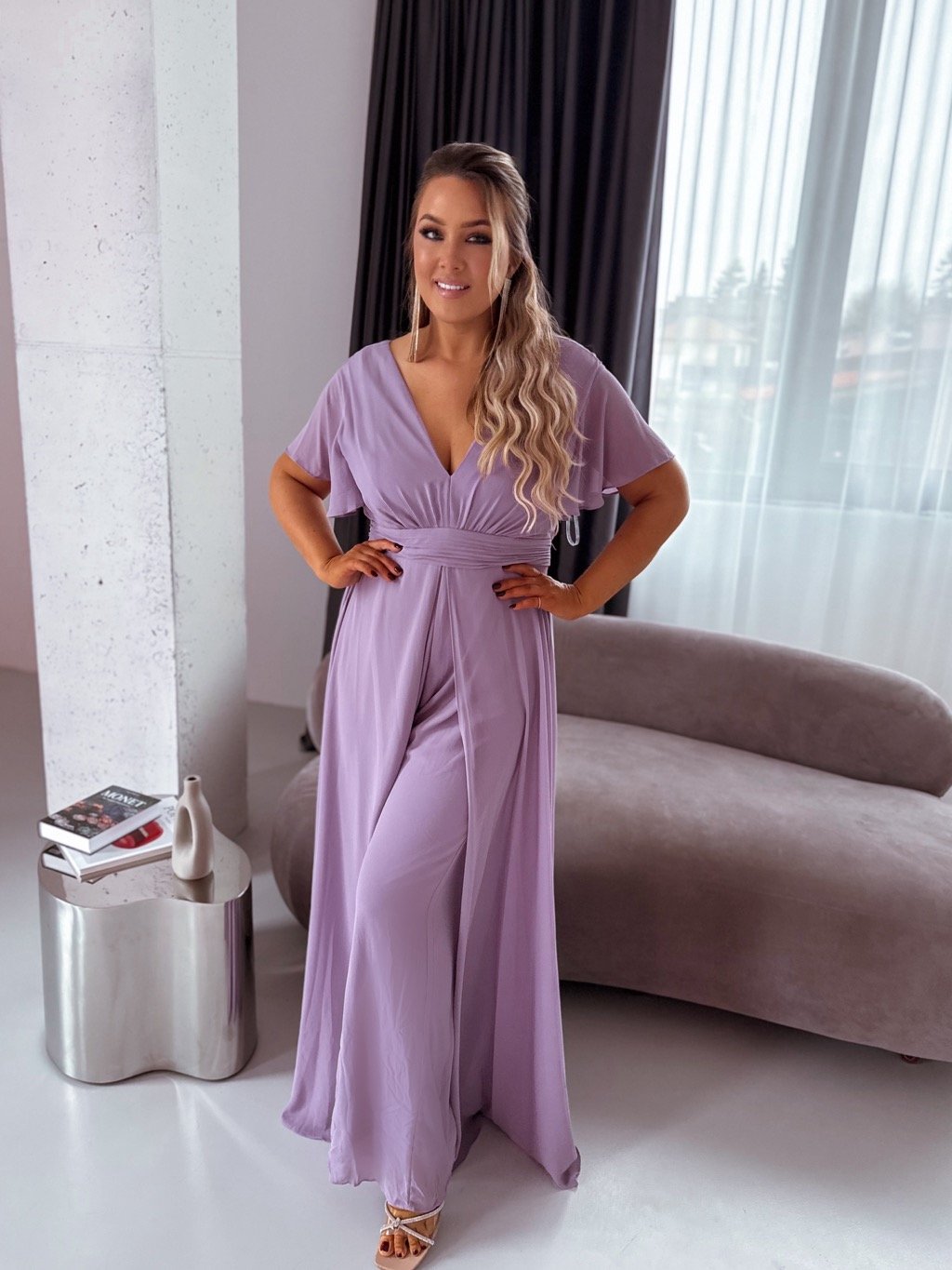 Dlhý elegantný overal/šaty - levanduľová