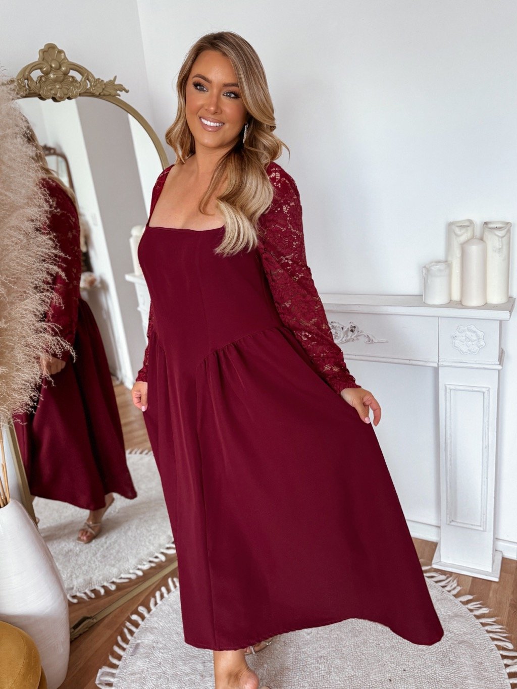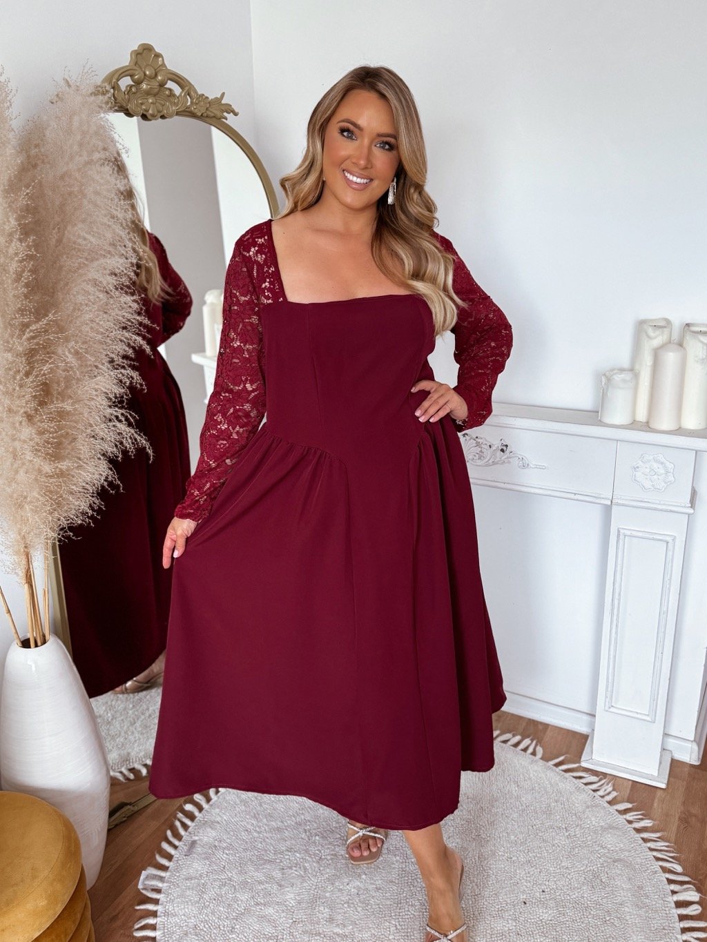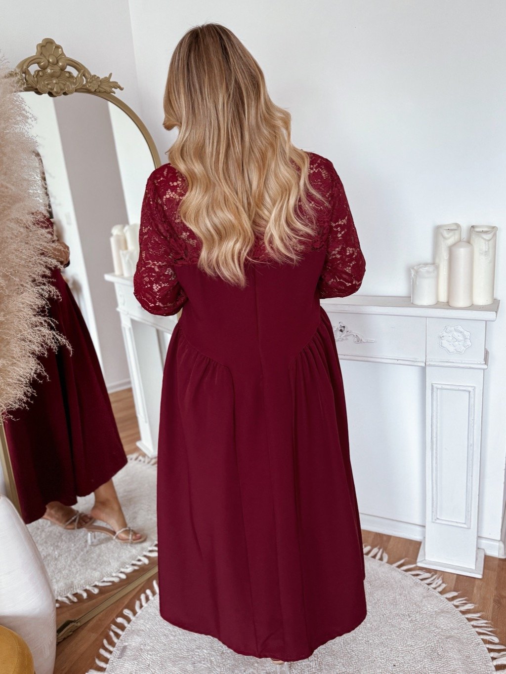Elegantné áčkové šaty s bohatou sukňou a čipkou na rukávoch. Šaty majú jemne vypchávky na prsiach, majú voľný strih. Šaty sedia na veľkosti 2XL- 4XL. Modelka meria 168 cm a má na sebe univerzálnu veľkosť.