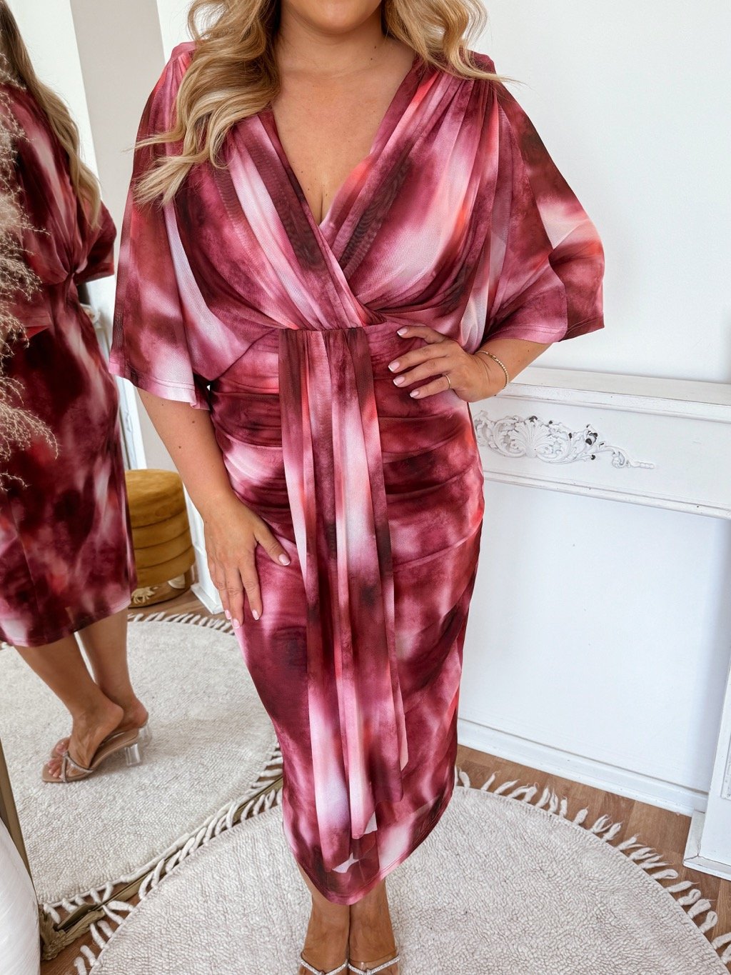 Elegantné elastické šaty so zipsom na chrbte. Rukáv je priehľadný, šaty majú jemnú výstuž na prsiach a vypchávky na ramenách. Modelka meria 168 cm a má na sebe veľkosť XL/2XL.