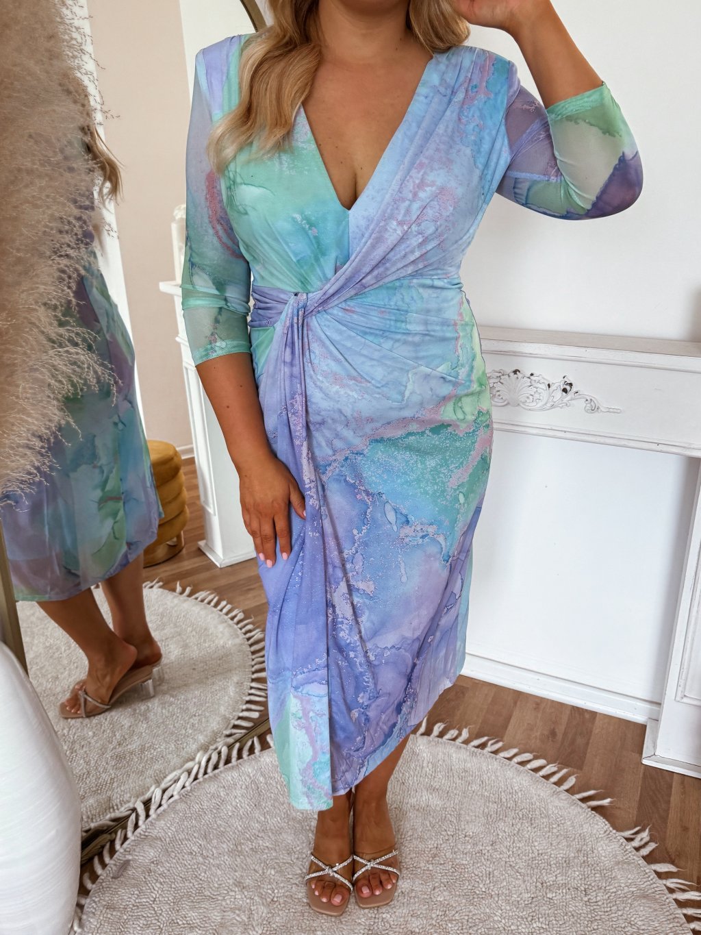 Pastelové midi šaty s mramorovým vzorom