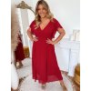 Elegantné spoločenské šaty pre moletky v červenej sú vyrobené z mierne elastického materiálu, majú zips na chrbte a jemnú výstuž na prsiachi. Modelka meria 168 cm a má na sebe veľkosť XXL.