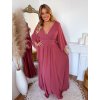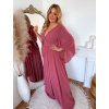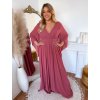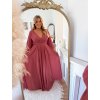 Dlhé spoločenské šaty s hlbokým výstrihom a výrazným dramatickým rukávom. Spoločenské šaty pre moletky majú všitú elastickú gumičku v páse zo zadnej strany. Sukňa je úplne voľná. Modelka meria 168 cm a má na sebe veľkosť XL (42).