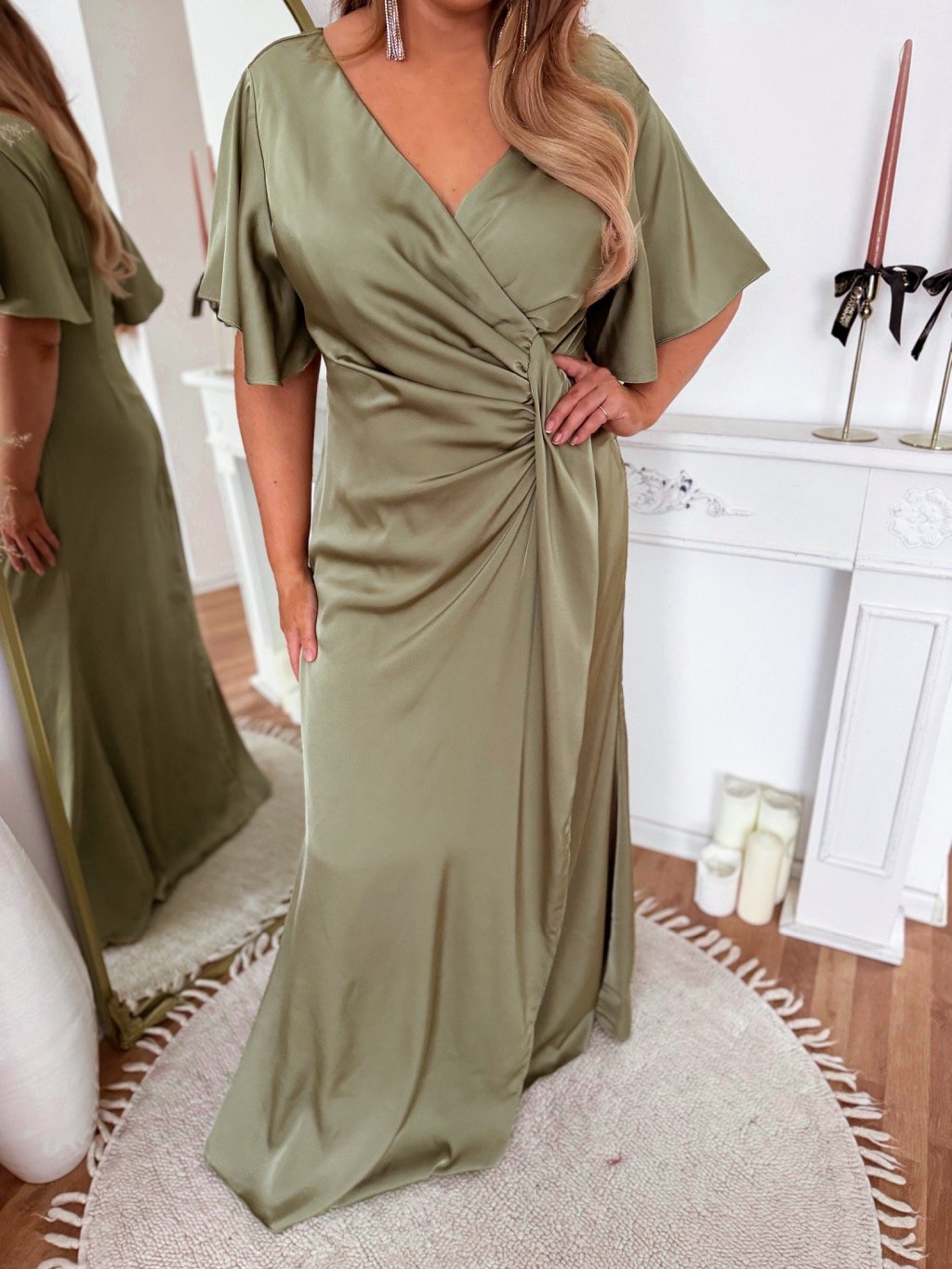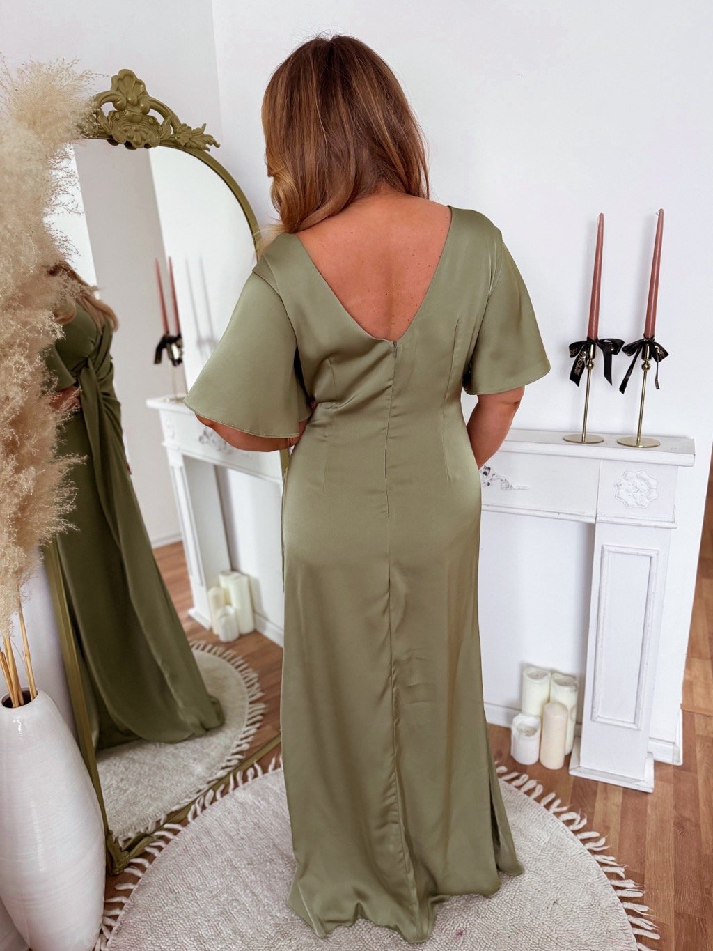 Dlhé spoločenské šaty pre moletky s krátkym rukávom. Šaty majú zips na chrbte, na prsiach majú jemnú penovú výstuž. Modelka meria 168 cm a má na sebe veľkosť XL.