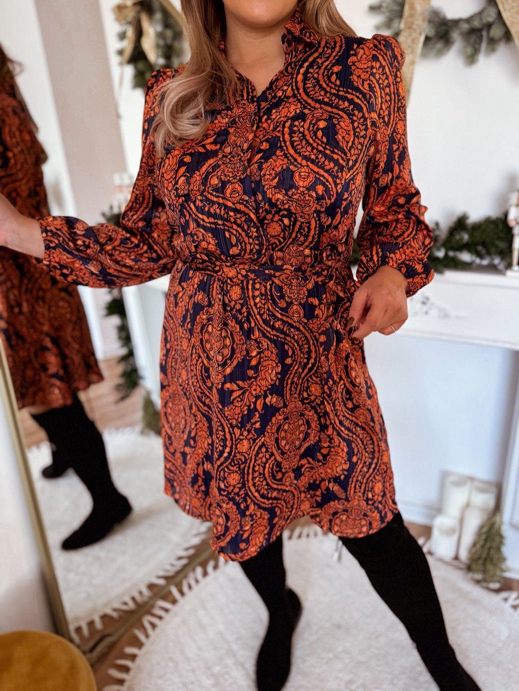 Tmavomodré košeľové šaty so vzorom
