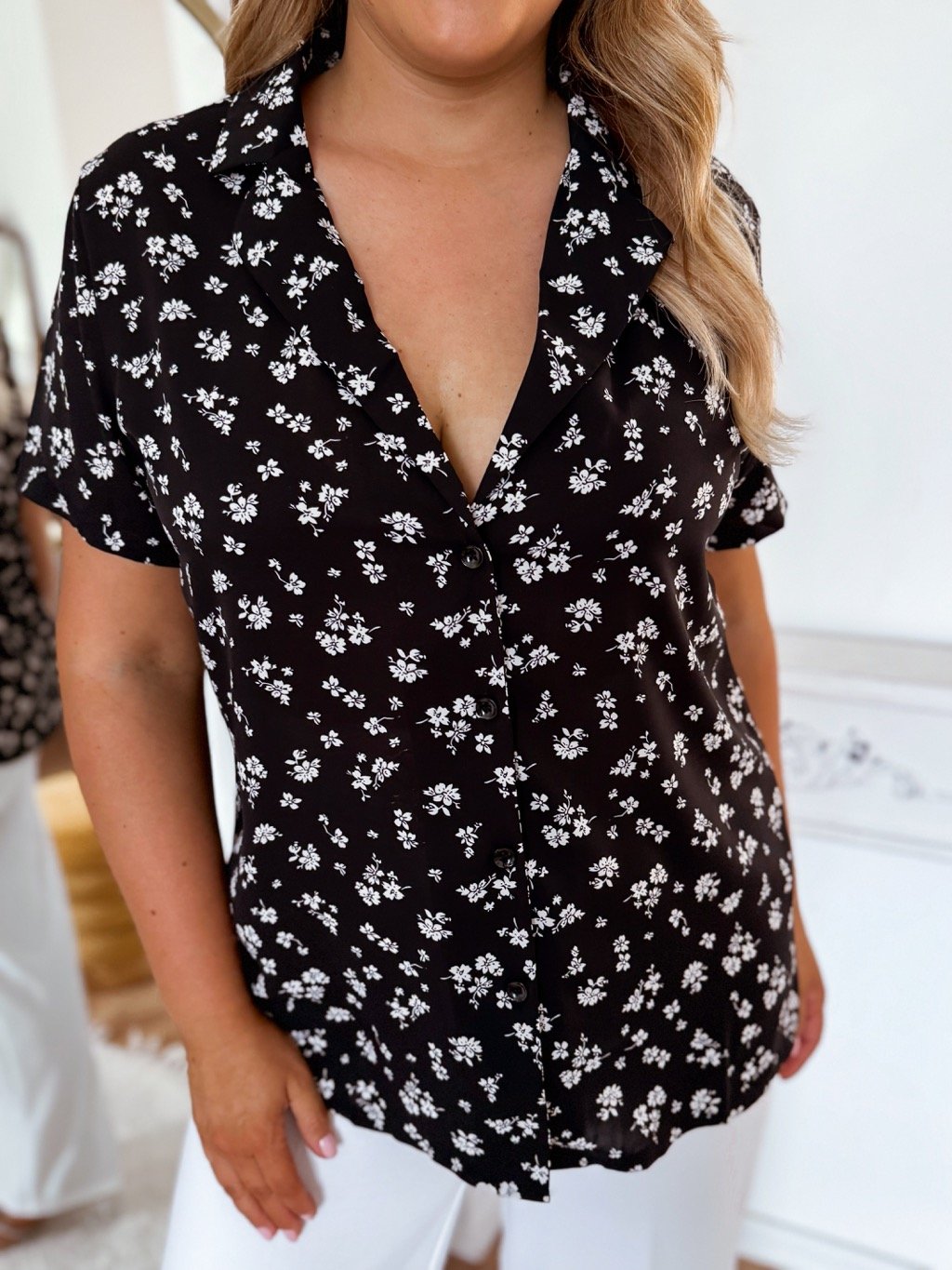 Čierno-biela košeľa s krátkym rukávom