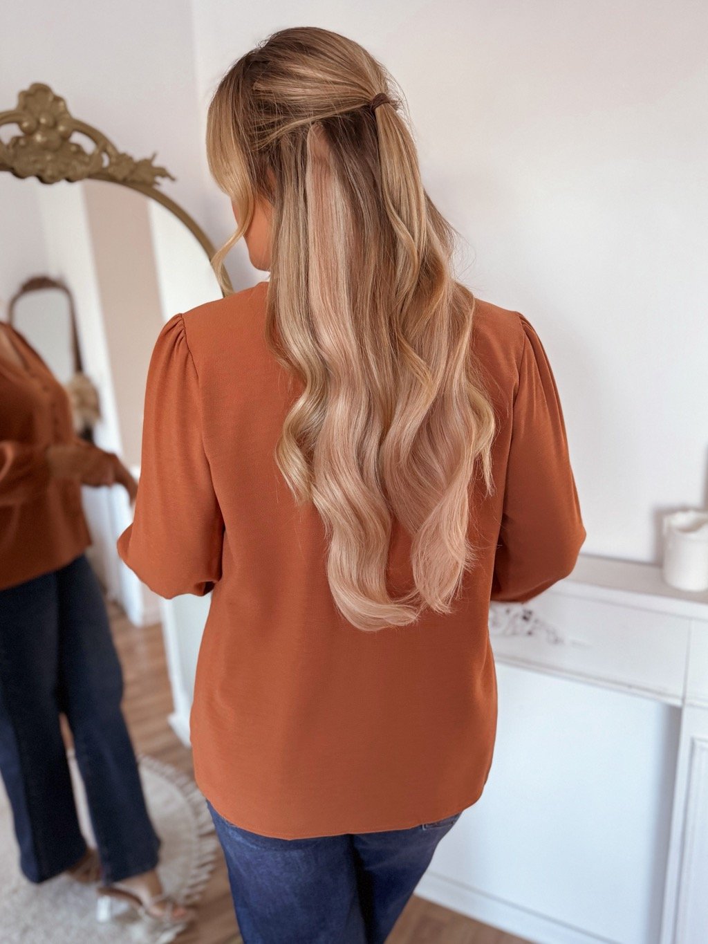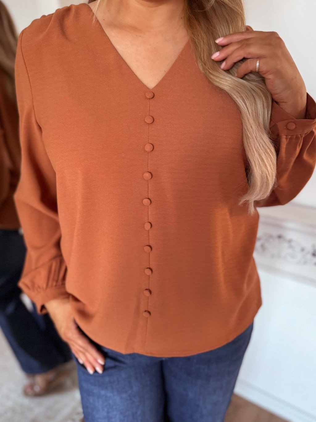 Hnedá blúzka s gombíkmi a dlhými rukávmi