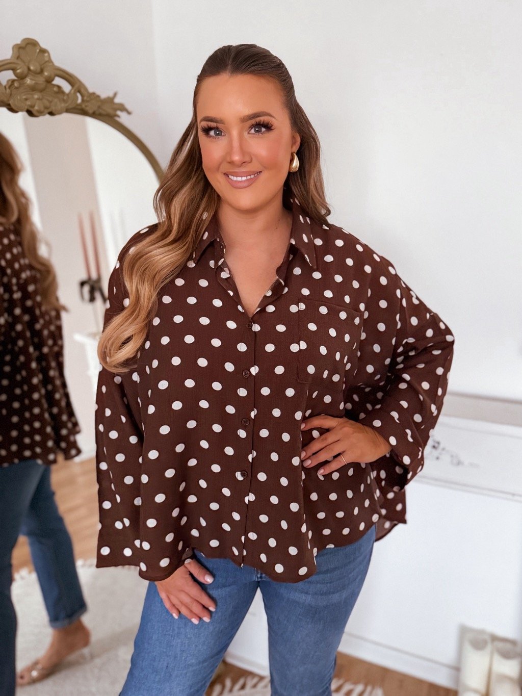 Hnedá voľná bodkovaná košeľa