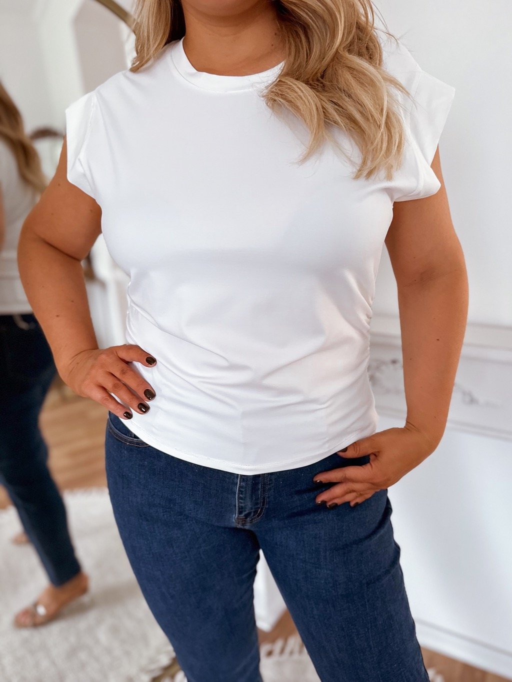 Biele tričko s nariasenými bokmi